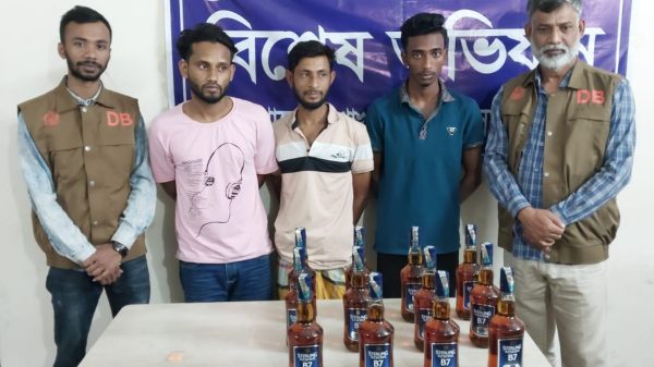 বাংলা ফটো নিউজ : ঢাকার ধামরাইয়ে বিশেষ অভিযান পরিচালনা করে ১২ বোতল বিদেশি মদসহ এক পেশাদার মাদক কারবারিকে গ্রেপ্তার করেছে ঢাকা জেলা উত্তর গোয়েন্দা পুলিশ (ডিবি)। রোববার (২৯ মার্চ) সকালে এক প্রেস বিজ্ঞপ্তির মাধ্যমে এ তথ্য জানান ঢাকা জেলা উত্তর