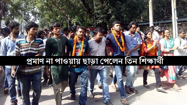 বাংলা ফটো নিউজ : গুজব ছড়ানোর অভিযোগ প্রমাণিত না হওয়ায় ঢাকা বিশ্ববিদ্যালয়ের (ঢাবি) ফজলুল হক মুসলিম হলের তিন শিক্ষার্থীকে ছেড়ে দিয়েছে পুলিশ।আজ মঙ্গলবার বিকেলে শাহবাগ থানা থেকে তাদের ছেড়ে দেওয়া