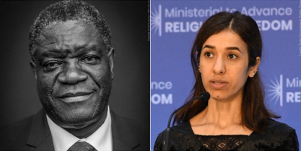 বাংলা ফটো নিউজ : ২০১৮ সালে শান্তিতে যৌথভাবে নোবেল পুরস্কার পেলেন ইরাকের কুর্দি মানবাধিকার কর্মী নাদিয়া মুরাদ ও কঙ্গোর চিকিৎসক ডেনিস মুকওয়েজি। আজ শুক্রবার এক সংবাদ সম্মেলনে চলতি বছরের পুরস্কারজয়ী