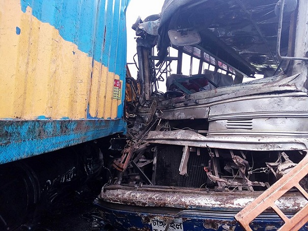 বাংলা ফটো নিউজ ; সাভারের আশুলিয়ায় যাত্রীবাহী বাস ও কাভার্ড ভ্যানের সংঘর্ষে একজন নিহত হয়েছে। এসময় আহত হয়েছে অন্তত ২০ জন। আজ সোমবার বিকেলে বাইপাইল-আব্দুল্লাহপুর মহাসড়কের আশুলিয়ার মড়াগাং এলাকায় এ