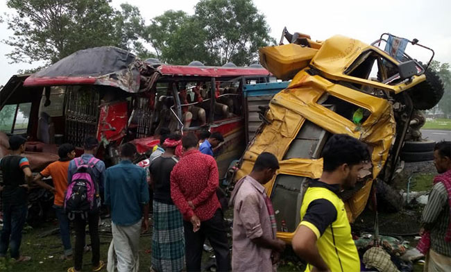 বাংলা ফটো নিউজ : সিরাজগঞ্জের সায়দাবাদে যাত্রীবাহী একটি বাসের সঙ্গে কাভার্ড ভ্যানের মুখোমুখী সংঘর্ষে চারজন নিহত হয়েছে। এতে আহত হয়েছেন আরো ১৯ যাত্রী। এদের মধ্যে দুইজনের অবস্থা আশঙ্কাজনক। আজ শনিবার