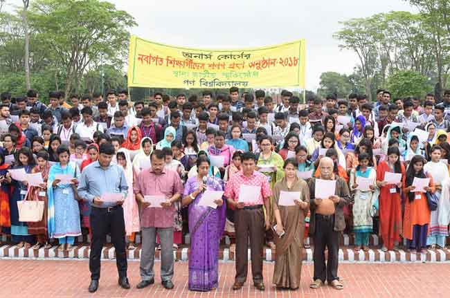 বাংলা ফটো নিউজ : সাভারের জাতীয় স্মৃতিসৌধের পাদদেশে ভাষা আন্দোলন, মুক্তিযুদ্ধসহ সকল গণতান্ত্রিক ও সামাজিক ন্যায় প্রতিষ্ঠার সংগ্রামের শহীদদের প্রতি শ্রদ্ধা জানানো এবং শপথবাক্য পাঠের মধ্য দিয়ে উচ্চশিক্ষায় যাত্রা শুরু