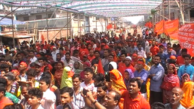 বাংলা ফটো নিউজ : সাভারে বকেয়া ৩ মাসের বেতনের দাবিতে ঢাকা-আরিচা মহাসড়ক ৫ ঘন্টা অবরোধ করে বিক্ষুব্ধ শ্রমিকরা। মঙ্গলবার সকাল সাড়ে ১০টা থেকে দেশের দক্ষিন ও পশ্চিমাঞ্চলগামী গুরুত্বপূর্ন ঢাকা-আরিচা মহাসড়কের
