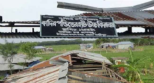 বাংলা ফটো নিউজ (দেলোয়ার হোসেন মৃধা, লক্ষ্মীপুর) : লক্ষ্মীপুরের কমলনগর উপজেলার কাদির পন্ডিতের হাট উচ্চ বিদ্যালয় কালবৈশাখী ঝড়ে ক্ষতিগ্রস্ত হয়েছে। ঝড়ে বিদ্যালয়ের টিনের ঘর ভেঙে পড়ায় অনিশ্চিত হয়ে পড়েছে পাঠদান