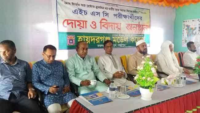 বাংলা ফটো নিউজ (দেলোয়ার হেেসেন মৃধা, লক্ষ্মীপুর) : রায়পুরে হায়দরগঞ্জ মডেল কলেজে এইচএসসি পরীক্ষার্থীদের বিদায় ও সংবর্ধনা অনুষ্ঠিত হয়েছে। আজ বৃহস্পতিবার অনুষ্ঠিত সংবর্ধনা অনুষ্ঠানে সভাপতিত্ব করেন কলেজের অধ্যক্ষ ড. একেএম