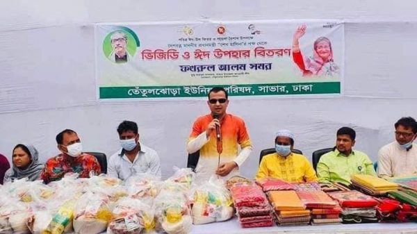 বাংলা ফটো নিউজ : পহেলা বৈশাখ ও ঈদুল ফিতরকে সামনে রেখে সাভারে সমাজের অসহায় ও দুস্থদের মাঝে ঈদ সামগ্রী বিতরণ করা হয়েছে। বৃহস্পতিবার (১৪ এপ্রিল) দুপুরে উপজেলার তেঁতুলঝোড়া ইউনিয়ন পরিষদ