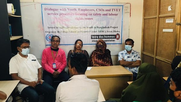 বাংলা ফটো নিউজ : সাভারে ভিলেজ এডুকেশন রিসোর্স সেন্টার (ভার্ক) এর উদ্যোগে নিরাপত্তা এবং শ্রম অধিকার সংক্রান্ত বিষয়ে যুবদের সাথে CSOs এবং TVET পরিষেবা প্রদানকারীদের সংলাপ অনুষ্ঠিত হয়েছে। বৃহস্পতিবার (২১