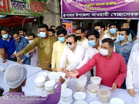 বাংলা ফটো নিউজ ; করোনায় বিপাকে পড়া সাভারের অসহায়, শ্রমজীবী ও কর্মহীন রোজাদার মানুষের মাঝে ইফতার বিতরণ করে উপজেলা আওয়ামী স্বেচ্ছাসেবক লীগ। সোমবার বিকেলে বাজার বাসস্ট্যান্ডের ক্যাপ্টেন সামাদ টাওয়ারের সামনে