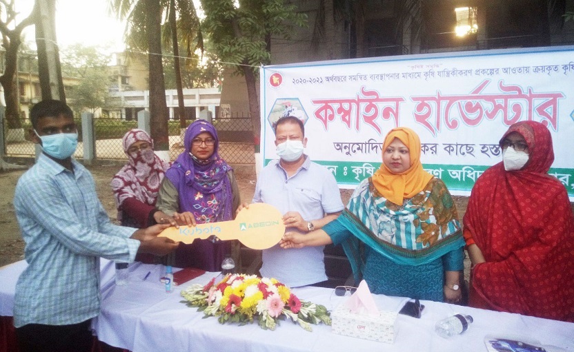 বাংলা ফটো নিউজ, সাভার (ঢাকা) : কৃষকদের মাঝে সরকারি ভর্তুকি মূল্যে কম্বাইন হারভেস্টার মেশিন বিতরণ করেছে উপজেলা কৃষি সম্প্রসারণ অধিদপ্তর। আজ বৃহস্পতিবার (১ এপ্রিল) বিকেলে উপজেলা পরিষদে স্থানীয় তিন জন