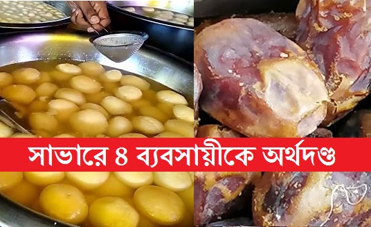 বাংলা ফটো নিউজ : সাভারে দুটি ফলের আড়ৎ ও দুটি মিষ্টির দোকানে অভিযান চালিয়ে ৪ প্রতিষ্ঠানকে অর্থদণ্ড দিয়েছেন ভ্রাম্যমাণ আদালত। বৃহস্পতিবার বিকালে সাভার বাজার রোড ও বাস স্ট্যান্ড এলাকায় অভিযান পরিচালনা করে