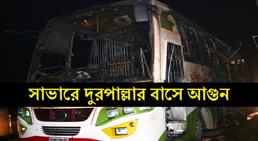 বাংলা ফটো নিউজ : সাভারে সড়ক দুর্ঘটনায় শ্রমিক আহত হওয়ার জের ধরে একটি দুরপাল্লার বাস আগুন দিয়ে পুড়িয়ে দিয়েছে বিক্ষুব্ধ জনতা। এসময় আগুন আতঙ্কে গাড়ি থেকে তাড়াহুড়া করে নামতে গিয়ে