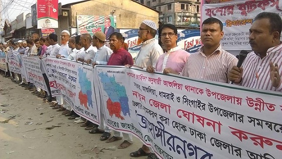 বাংলা ফটো নিউজ : সময়ের চাহিদা অনুযায়ী আশুলিয়া থানাকে উপজেলায় উন্নীত করে সাভার, ধামরাই ও মানিকগঞ্জের সিঙ্গাইর উপজেলা নিয়ে জাহাঙ্গীরনগর নামে নতুন জেলা ঘোষণার দাবিতে সোমবার সাভার থানা রোডে মানববন্ধনসহ