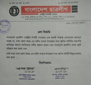 বাংলাদেশ ছাত্রলীগের সভাপতি ও সাধারণ সম্পাদকের যৌথ স্বাক্ষরিত এক প্রেস বিজ্ঞপ্তিতে জানানো হয়, ঢাকা জেলা উত্তরের অধীন সাভার উপজেলা শাখার স্থগিত কমিটির সভাপতি আতিকুর রহমান আতিককে দলীয় শৃঙ্খলা ভঙ্গের দায়ে বাংলাদেশ ছাত্রলীগ থেকে স্থায়ী বহিষ্কার করা হলো এবং সেইসাথে ঢাকা জেলা উত্তরের অধীন সাভার উপজেলা শাখার স্থগিত কমিটি বিলুপ্ত ঘোষণা করা হলো।
