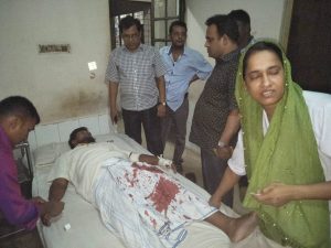 বাংলা ফটো নিউজ : মাদক ব্যবসায় বাঁধা দেওয়ায় আছমত আলী (৫৫) নামের এক ব্যক্তিকে ধারালো অস্ত্র দিয়ে কুপিয়ে গুরুতর জখম করেছে মাদক ব্যবসায়ী শহিদ পালোয়ান ও তার দলবল। পরে এলাকাবাসী আছমত আলীকে রক্তাক্ত জখম অবস্থায় উদ্ধার করে সাভার উপজেলা স্বাস্থ্য কমপ্লেক্সে ভর্তি করে। ঘটনাটি ঘটে বৃহস্পতিবার রাতে সাভার মডেল থানাধীন মজিদপুর রাজার বাড়ি এলাকায়। এ ঘটনায় আহত আছমত আলীর মেয়ের জামাই সেলিম পারভেজ বাদী হয়ে রাতেই থানায় একটি মামলা দায়ের করেন।পরে সাভার মডেল থানা পুলিশ ওই মাদক ব্যবসায়ী শহিদ পালোয়ানকে গ্রেপ্তার করেছে।