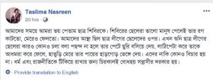 উল্লেখ্য, স্বাধীনতাবিরোধীদের দল জামাতে ইসলামীর ছাত্র সংগঠন ছাত্র শিবির নৃশংসতার জন্য কুখ্যাত হয়ে আছে। তারা প্রতিপক্ষকে নৃশংশ কায়দায় চরম কষ্ট দিয়ে হত্যা করত। স্বাধীনতার পক্ষের সরকারের আমলে এরা গর্তে ঢুকলেও সুযোগ পেলেই এসব অপকর্ম এখনও করে যায়। প্রায় একইরকম আচরণ প্রগতিশীল বলে পরিচিত ছাত্র সংগঠন ছাত্রলীগের কাছ থেকে আশা করেননি তসলিমা।