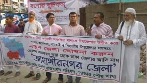 বক্তারা অরো বলেন, প্রশাসন, বিচার, শিক্ষা, চাকরি, ডিসি ও এসপি অফিস, কোর্টসহ সব বিভাগীয় কার্যালয় রাজধানী ঢাকাকেন্দ্রিক হওয়ায় আমাদের এই তিন উপজেলা ও একটি থানার জনগণের যাতায়াতসহ অফিসিয়াল কাজকর্ম করতে বিভিন্ন সমস্যা হয়। সে জন্য সাভার, আশুলিয়া, ধামরাই ও মানিকগঞ্জের সিঙ্গাইর উপজেলাকে একীভূত করে জাহাঙ্গীরনগর (প্রস্তাবিত) জেলার নাম ঘোষণা করার আহ্বান জানানো হয়।