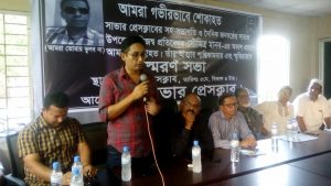 সাভার প্রেসক্লাবের সভাপতি নাজমুস সাকিব-এর সভাপতিত্বে অনুষ্ঠিত স্মরণ সভায় প্রধান অতিথি হিসেবে উপস্থিত ছিলেন সাভার পৌরসভার মেয়র আলহাজ্ব আব্দুল গণি। সভায় বিশেষ অতিথি হিসেবে উপস্থিত ছিলেন সাভার নাগরিক কমিটির সভাপতি কৃষিবিদ ড. রফিকুল ইসলাম ঠান্ডু মোল্লা, সাভার উপজেলা শাখা দুর্নীতি প্রতিরোধ কমিটির সভাপতি ও বিশিষ্ট ব্যবসায়ী আলহাজ্ব শওকত আলী মাহামুদ, বিএফইউজের দপ্তর সম্পাদক বরুণ ভৌমিক নয়ন, আশুলিয়া প্রেসক্লাবের সভাপতি শহিদুল্লাহ মুন্সি, সাভার মডেল থানার ভারপ্রাপ্ত কর্মকর্তা এএফএম সায়েদ ও ওসি (তদন্ত) মোঃ সওগাতুল আলম, সাভার উপজেলা শাখা দুর্নীতি প্রতিরোধ কমিটির সাধারণ সম্পাদক সালাহউদ্দিন খান নঈম, সাভার মহিলা পরিষদ সাভার শাখার সভানেত্রী পারভীন ইসলাম, সম্মিলিত সাংস্কৃতিক জোট সাভার শাখার সভাপতি আব্দুল কাদের তালুকদার, সাভার পৌর ওয়ার্ড কাউন্সিলর মোঃ নূরে আলম সিদ্দিকী নিউটন, সাভার পৌর নাগরিক কমিটির সভাপতি ও ফোয়াসের সহ-সভাপতি ডা. আব্দুর রাজ্জাক প্রমুখ।