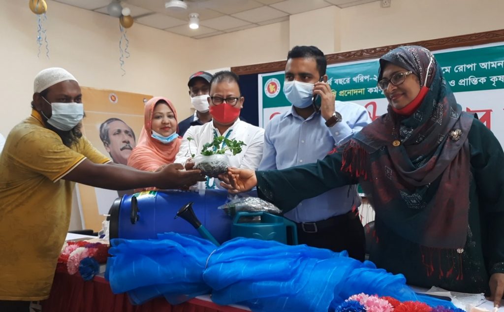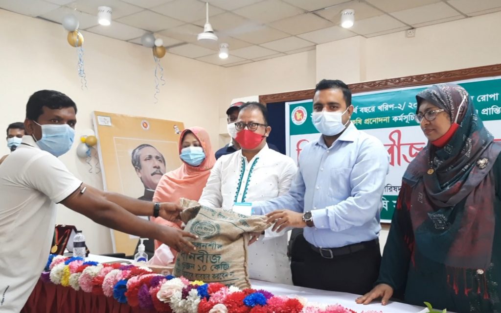 সাভারের তিন জন কৃষি উদ্যোক্তাকে অর্ধেক ভর্তুকিতে তিনটি পিকআপ ভ্যান ও মৌসুমে রোপা আমন ধান উৎপাদন বৃদ্ধির লক্ষ্যে কৃষি প্রনোদনা কর্মসূচির আওতায় ক্ষুদ্র ও প্রান্তিক কৃষকের মাঝে বিনামূল্যে বীজ ও সার বিতরক করে কৃষি সম্প্রসারণ অধিদপ্তর।